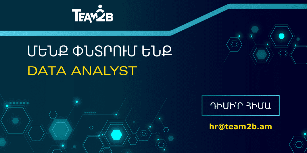 Team2B-ն փնտրում է ակտիվ և մոտիվացված Data Analyst-ի, ով կօգնի կազմակերպությանը և գործընկեր կազմակերպություններին անհրաժեշտ գործառույթների իրականացման գործում։