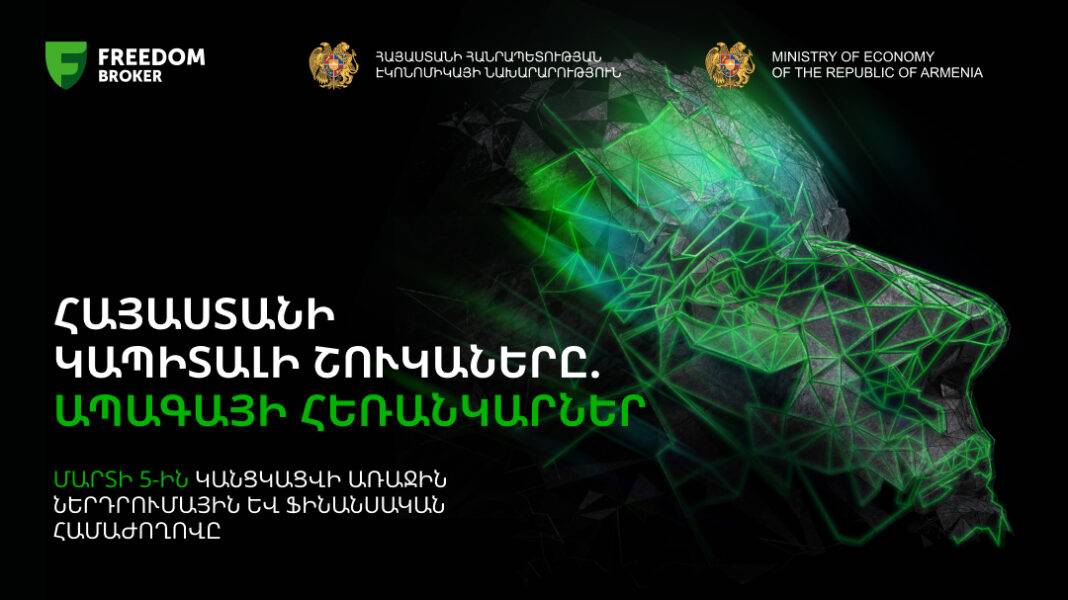 Հայաստանում առաջին ներդրումային և ֆինանսական համաժողովը տեղի կունենա 2024 թվականի մարտի 5-ին Dvin Music Hall-ում։ Այն կազմակերպվել է Freedom Broker Armenia-ի կողմից՝ ՀՀ էկոնոմիկայի նախարարության հետ համագործակցությամբ, և նախատեսվում է դառնալ ֆինանսական ոլորտի նշանակալից իրադարձություն: Միջոցառումը մեկ հարթակում կմիավորի ավելի քան 500 մասնակցի: Ակնկալվում է, որ ելույթ կունենա 20 բանախոս՝ խոշոր բիզնեսի առաջնորդներ և համաշխարհային մակարդակի փորձագետներ։