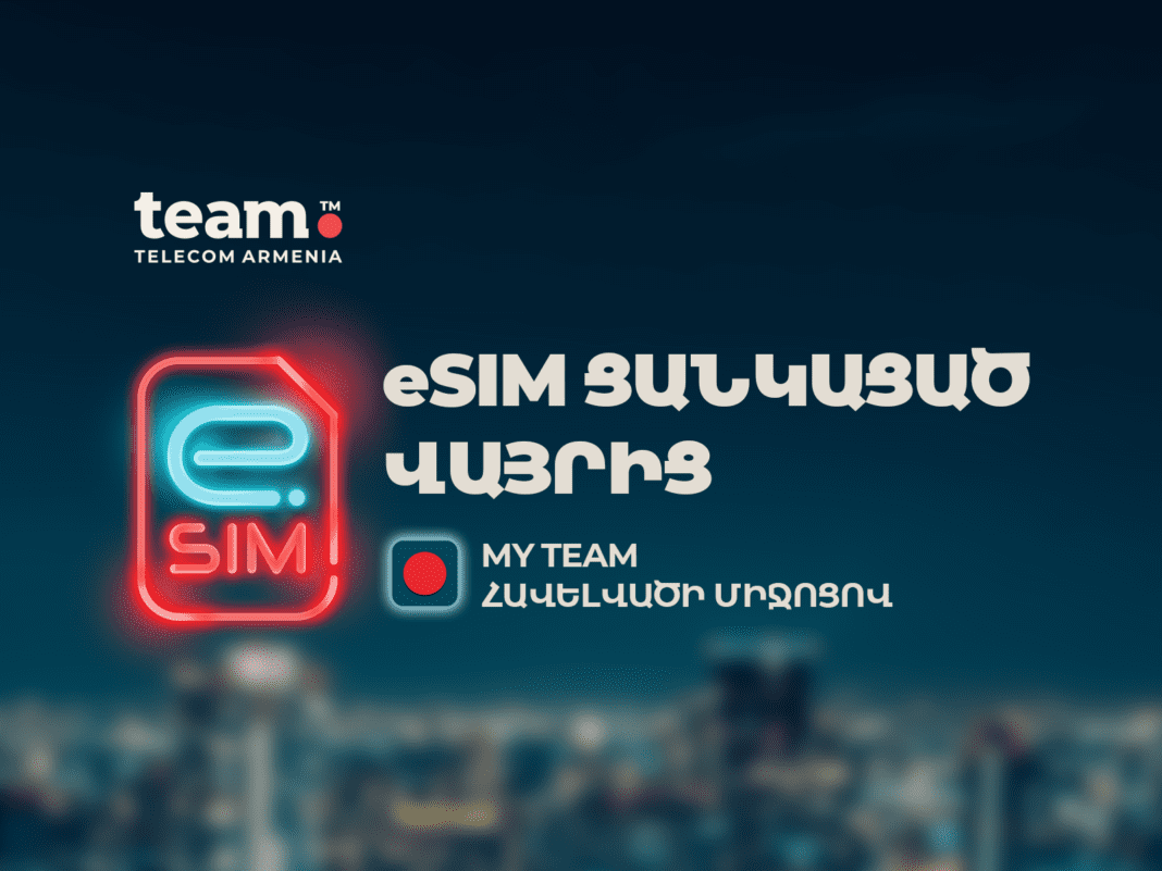 Team Telecom Armenia-ի հեռախոսահամար գնելու համար այլևս պարտադիր չէ լինել Հայաստանում կամ մոտենալ մասնաճյուղ։ Team-ը, առաջինը Հայաստանում, թվային լուծումների շնորհիվ բացառիկ հնարավորություն է տալիս My Team հավելվածի միջոցով գնել eSIM քարտ և ակտիվացնել այն աշխարհի ցանկացած կետից։