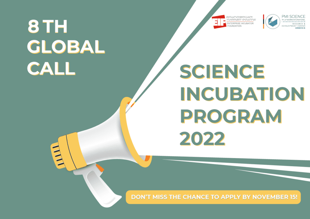 «Ձեռնարկությունների ինկուբատոր» հիմնադրամը հայտարարում է PMI Science-ի աջակցությամբ իրականացվող Գիտական ինկուբացիայի ծրագրի հայտերի ընդունման 8-րդ փուլի մեկնարկը: