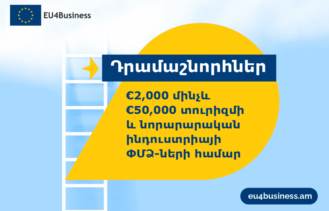 EU4Business-ը հայտարարում է 2,000-ից մինչև 50,000 եվրո դրամաշնորհ ստանալու հնարավորության մասին՝ շուկա մուտք գործելու հարցում աջակցության, մարքեթինգի ու որակի չափանիշների վերաբերյալ խորհրդատվության համար։