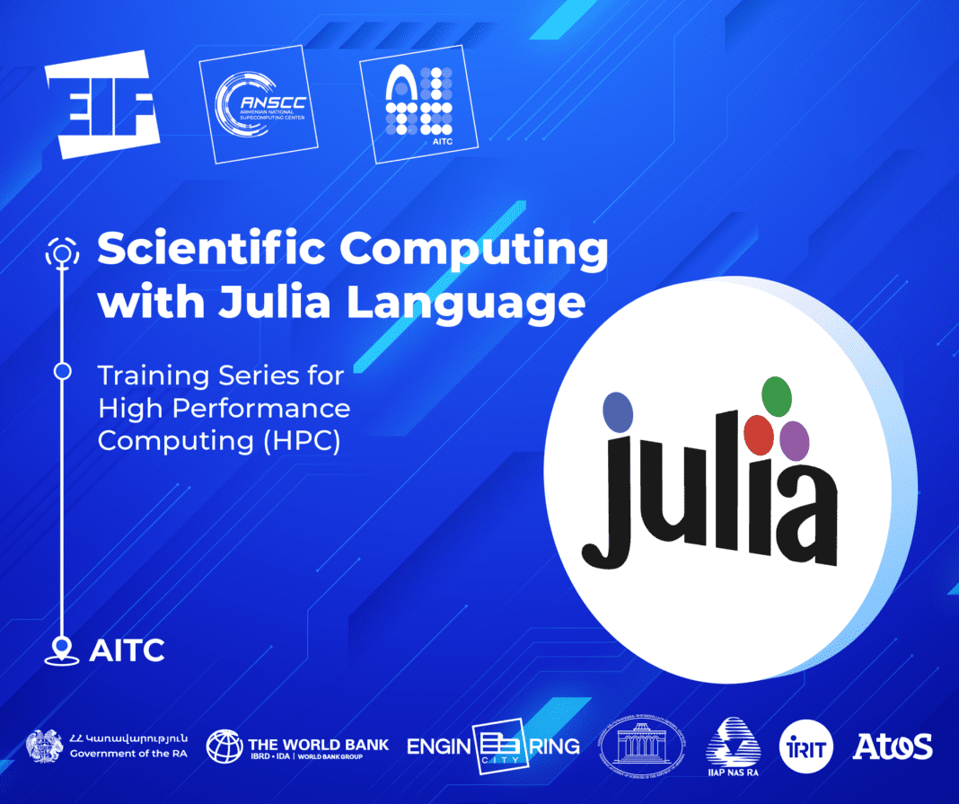 «Հայաստանում Ազգային գերհամակարգչային կենտրոնի ստեղծում» (ANSCC) ծրագրի ներքո մեկնարկում է անվճար դասընթացների շարքի հաջորդ՝ “Scientific Computing with Julia language” դասընթացը։