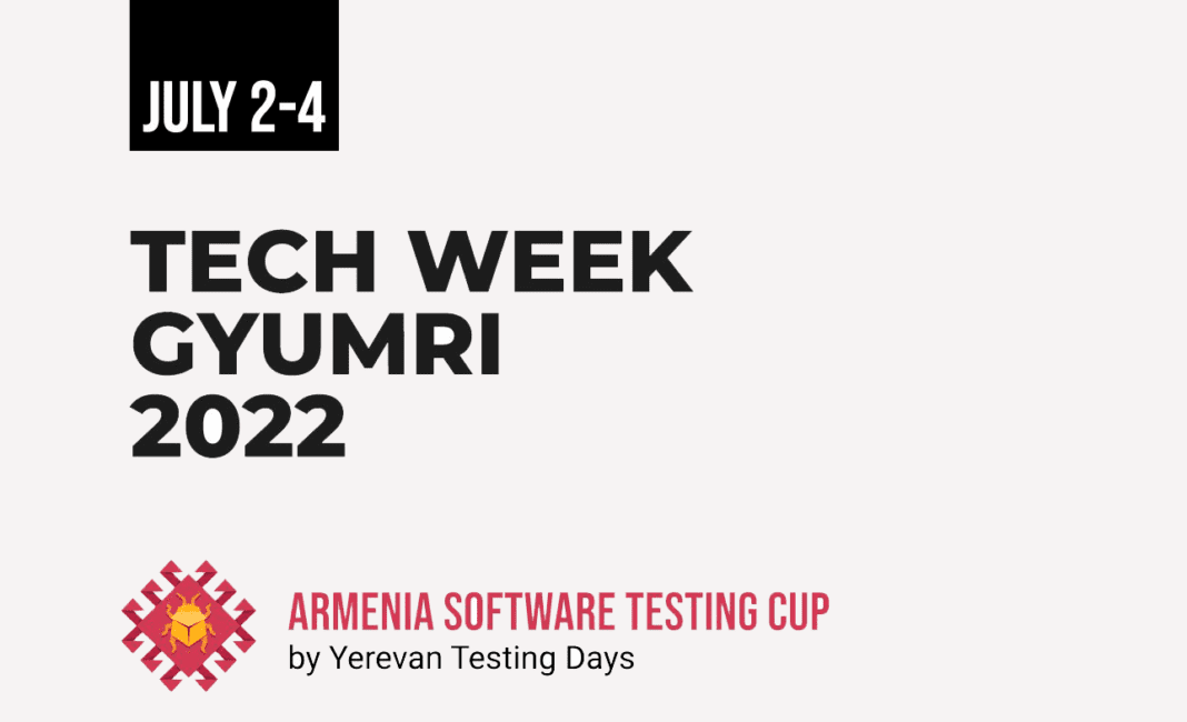 Yerevan Testing Days հանձնաժողովի հետ համագործակցության արդյունքում առաջին անգամ Tech Week Gyumri-ի շրջանակներում կկազմակերպվի Armenia Software Testing Cup 2022-ը, որը մրցույթ է ծրագրային ապահովման թեստավորման թիմերի միջև: